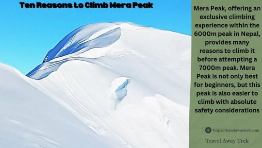 Introduction to Mera Peak Climbing in Nepal Mera Peak is a good choice for first-time climbers attempting their 6000m peak. Its gentle terrain and stunning