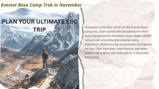 Scale new heights on the Everest Base Camp Trek in November. Hike Nepal's fabulous tracks beneath radiant fall skies. Look forward to brisk rainfall and